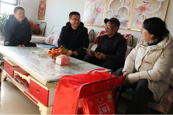 李德宏副會(huì)長(zhǎng)一行還走訪慰問(wèn)了高臺(tái)縣新壩鎮(zhèn)3戶困難群眾,每戶送去1000元的慈善救助金和1床棉被,給他們帶去了黨和政府以及社會(huì)各界愛(ài)心人士的溫暖和關(guān)懷。在困難群眾家中,李德宏與受助群眾面對(duì)面促膝交流,詳細(xì)了解他們家庭中的生產(chǎn)生活情況,鼓勵(lì)他們堅(jiān)定信心,積極樂(lè)觀面對(duì)眼前困難,努力創(chuàng)造幸福美好生活。同時(shí),叮囑鎮(zhèn)村干部及民政部門負(fù)責(zé)人,要時(shí)刻把困難群眾的冷暖放在心上,用心用情落實(shí)好各項(xiàng)民生保障政策,精準(zhǔn)對(duì)接群眾需求,切實(shí)為困難家庭排憂解難,全力做好特殊群體的關(guān)愛(ài)幫扶工作,確保他們度過(guò)一個(gè)歡樂(lè)、祥和、溫暖的新春佳節(jié)。